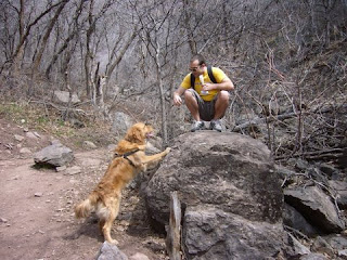 On Saturday Lori, Hurley, and I went out for the first hike of the season. It was a beautiful day and Lori was so pumped up to get out and do something fun with the dog. The hike was a little steeper than we had anticipated and I was having a really hard time making it up the mountain. Lori and the dog had to keep pulling me along ;) We finally did make it past the hard part and it ended up being an easy hike with a beautiful view of the Salt Lake Valley. We had a great time and all three of us were pretty tired by the time we got home. Lori and Hurley both stripped their clothes off and took a nap right on the floor (that's why only their heads are showing in the picture). We hope all of you enjoyed the beautiful weekend!!